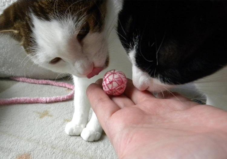 みかんの首輪と一緒に手作りおもちゃ「ねこだま」も