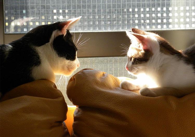 モモちゃんとみかんちゃん仲良く日向ぼっこしてるね♪
