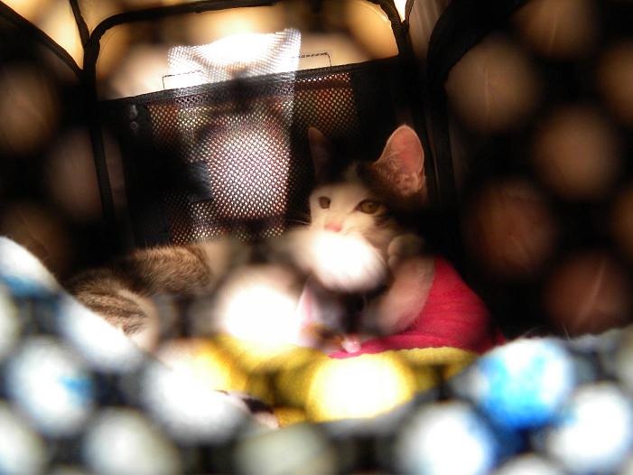 ケージの中ではやっぱりご機嫌斜めになっちゃいます