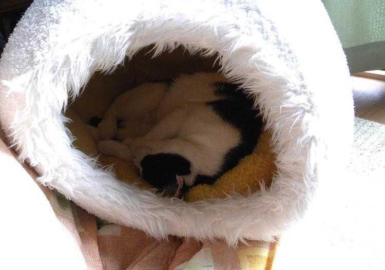 昨日も大好きなひよこベッドの中で眠ってました