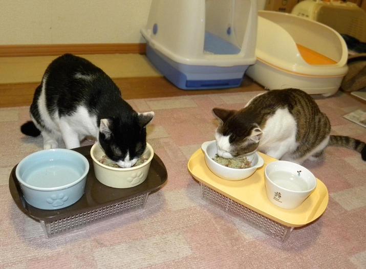 美味しいご飯にがっつく2匹。。。
