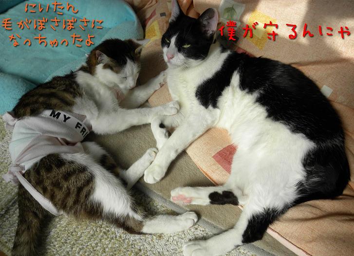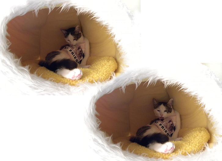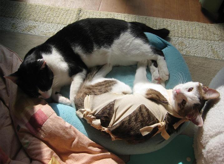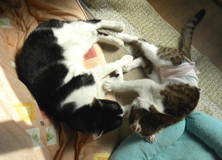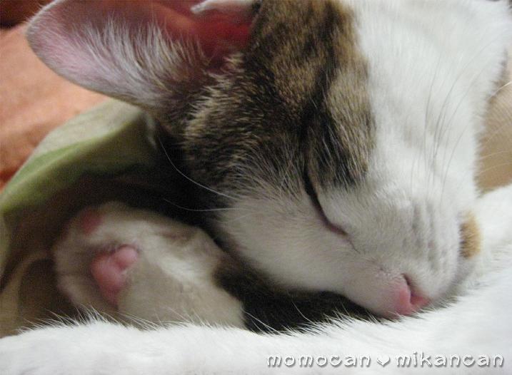病院で怖がり疲れてさっさと昼寝体勢に。。。何故かモモも一緒に