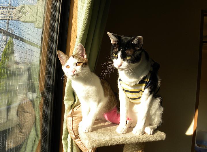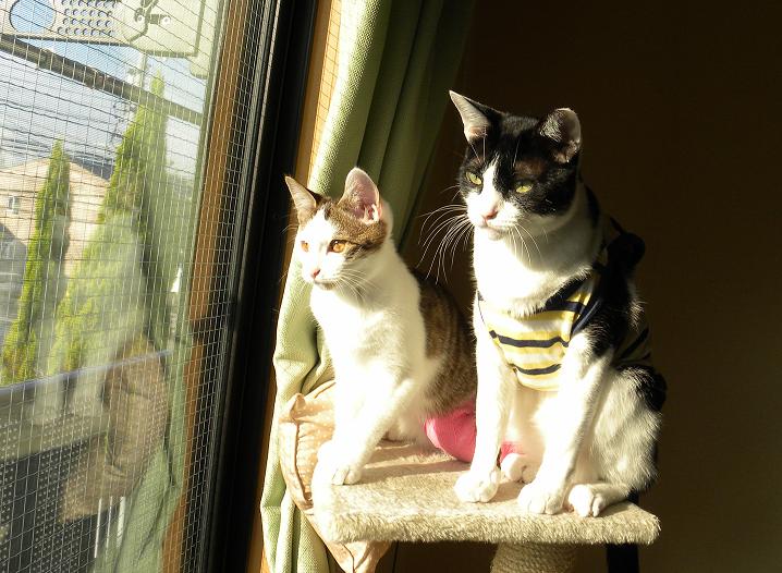 2匹一緒に外を眺め
